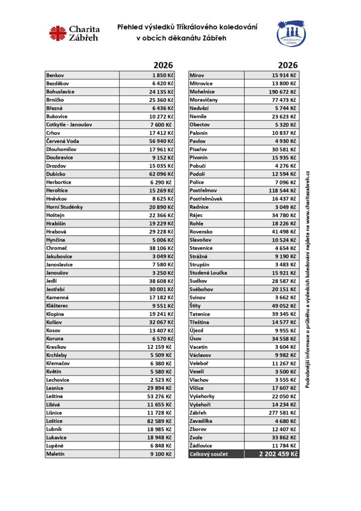 Výsledky tříkrálovské sbírky – Charita Zábřeh