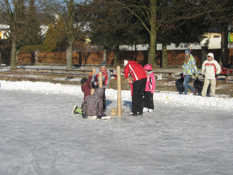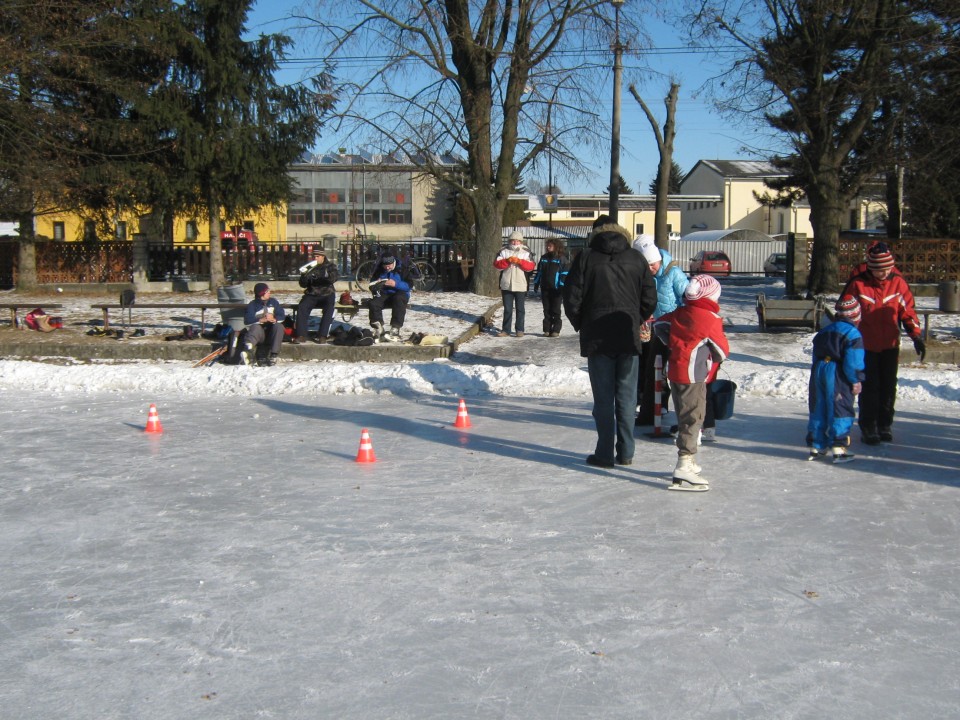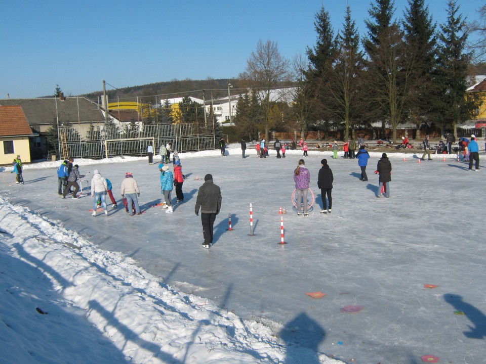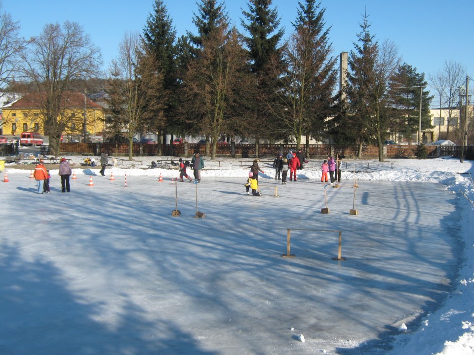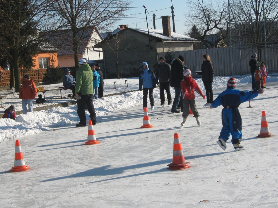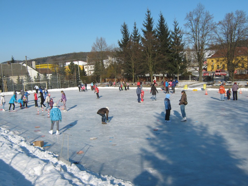 Díky členům SDH Klopina a několika ochotným dobrovolníkům se podařilo během tří velmi mrazivých nocí nastříkat led na hřišti, který potom využívali zájemci i z okolních obcí.